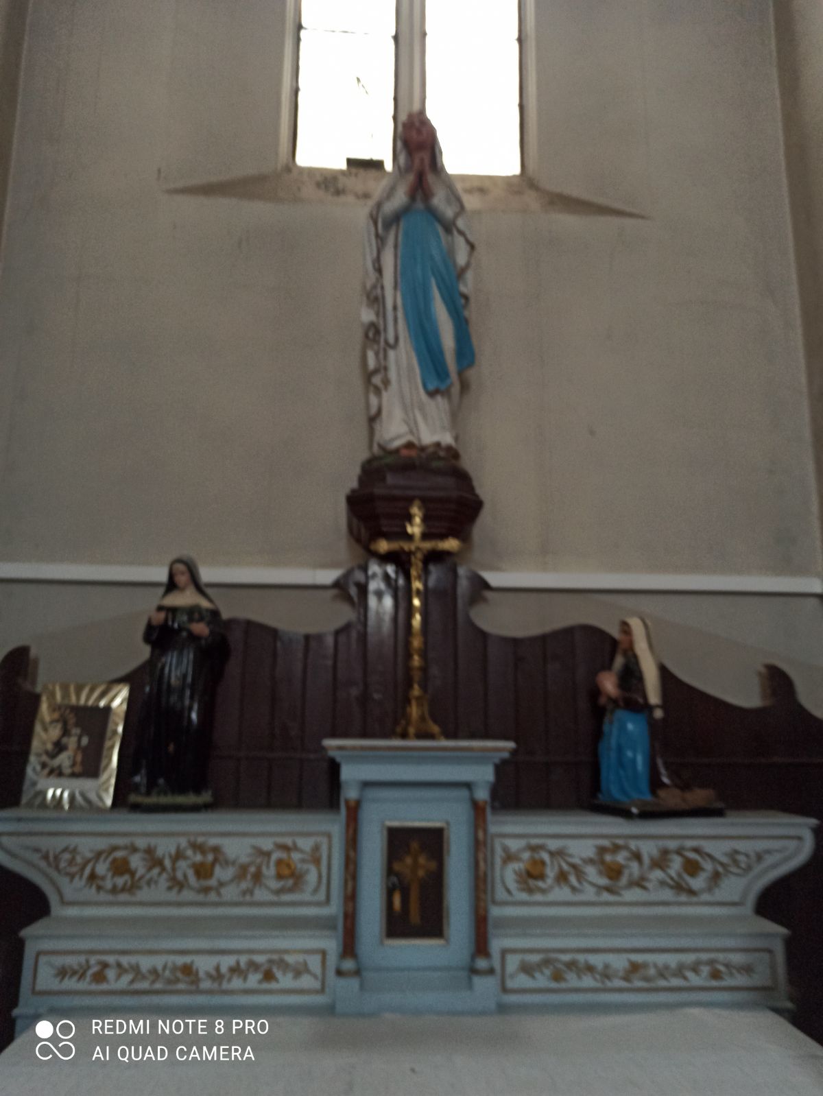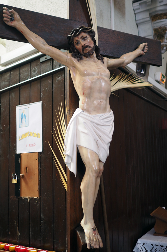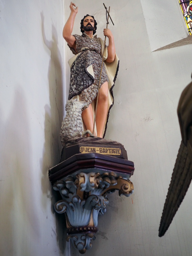 La visite s’effectue en partant sur la gauche au niveau des fonds baptismaux, dans le sens des aiguilles d’une montre :